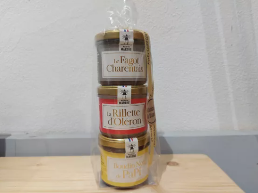 tartinables terre composé de la tartinable le fagot charantais, la tartinable boudin noir et la rillette poulet rôti.