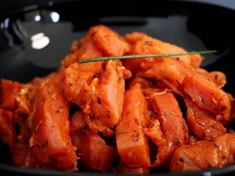fines lamelles tendres et savoureuses de veau, sautées avec des tomates mûres, des oignons doux, des poivrons colorés, des olives noires et des herbes aromatiques telles que le thym, le romarin et l'origan. Le tout est mijoté lentement dans une sauce tomate parfumée, pour créer un plat aux saveurs riches et équilibrées.