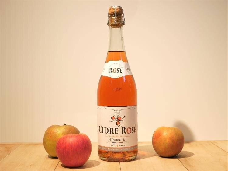 Le cidre rosé 3% vol. alcool (Il se révèle frais et fruité avec un nez de fruits frais et de notes florales. Une robe chatoyante, de fines bulles, combinant acidité et légers sucres résiduels en bouche).